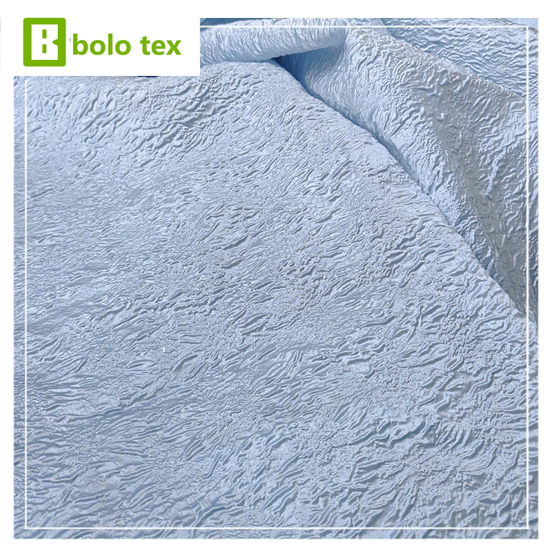 Elevate your designs with this enchanting jacquard fabric combining 3D bubble gauze texture and semi-sheer organdy for magical dimension. The subtle floral watermark pattern creates ethereal movement perfect for: