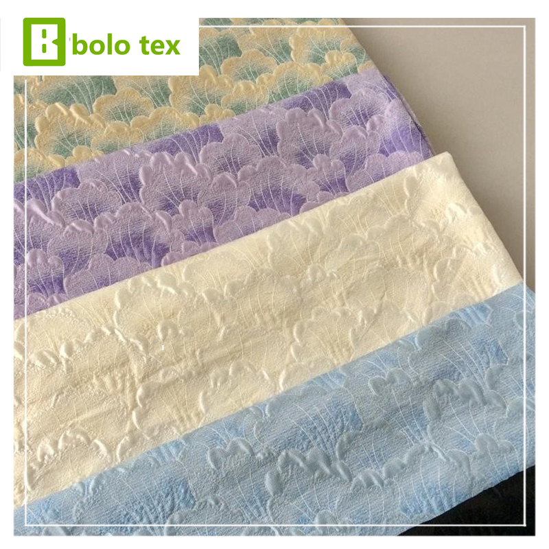 This sophisticated jacquard fabric artfully blends crisp geometric fan patterns with soft, dimensional cloud-like textures, creating a unique tactile and visual appeal. The medium-weight (160-180gsm) woven construction offers excellent drape for fluid dresses while maintaining enough structure for handbags and tailored garments. Featuring a refined neutral color palette in moonstone grey, pearl white, and warm taupe, the fabric is finished for crinkle resistance and easy care. The subtle 3D effect adds depth to minimalist designs without compromising versatility. Perfect for contemporary womenswear, accessories, and home decor projects requiring both elegance and texture.